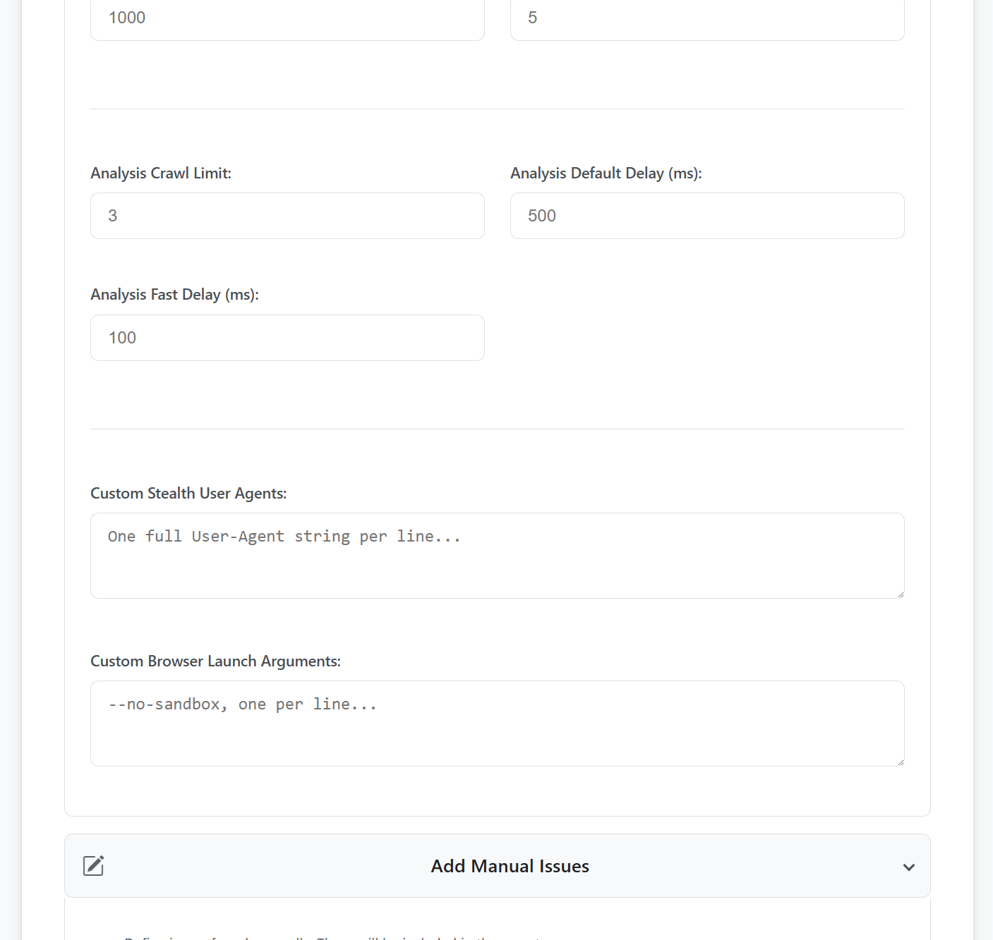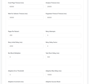 - Advanced Browser Control: Provides options to modify low-level browser launch arguments, disable GPU acceleration, and control JavaScript execution during the link discovery phase of a crawl.
