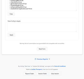 - Persistent Browser Sessions: Maintains a persistent browser session by preserving cookies and local storage between scans. This simplifies the testing of authenticated areas by removing the need for repeated manual logins.