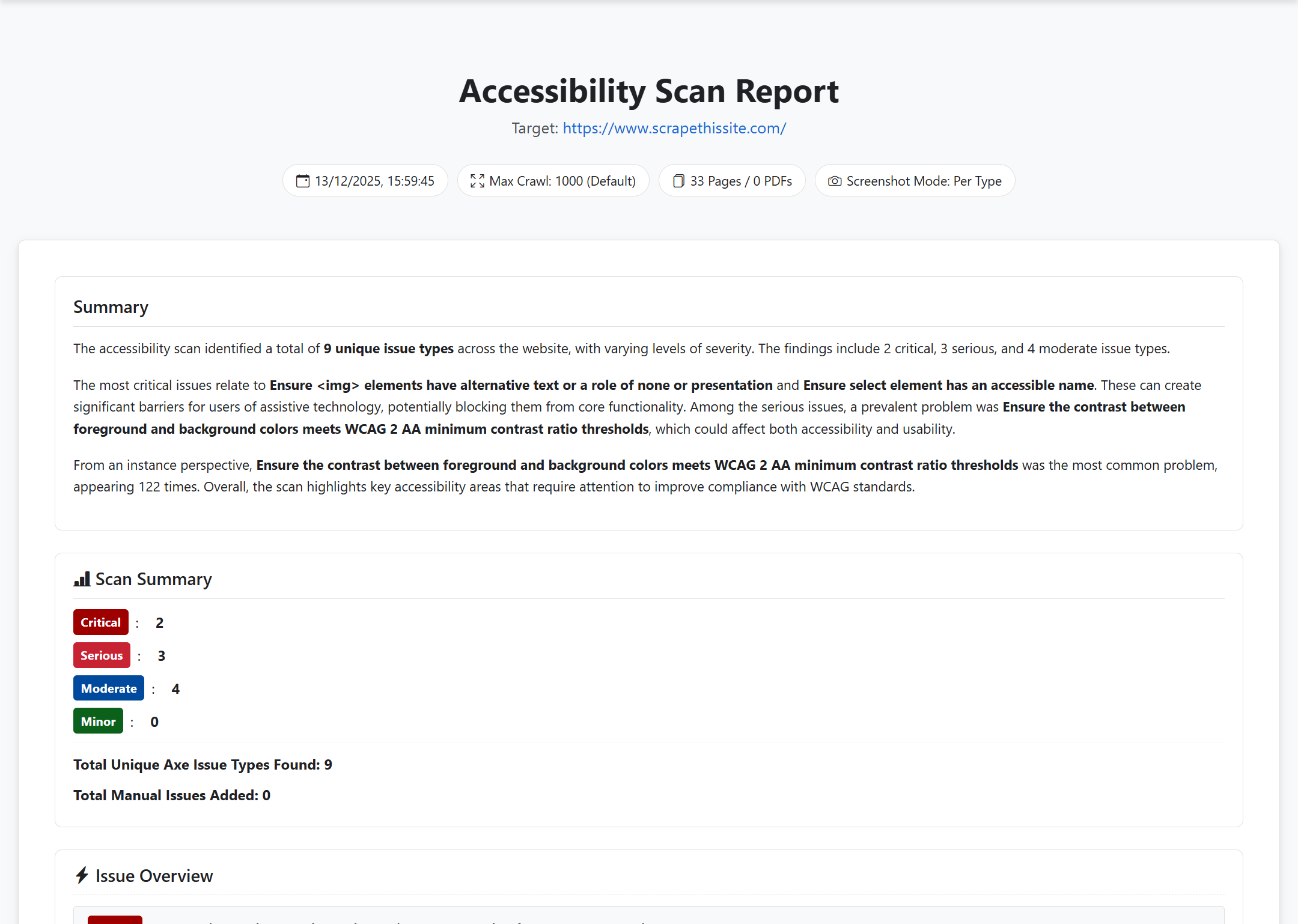 Automated Accessibility Scanning & Reporting